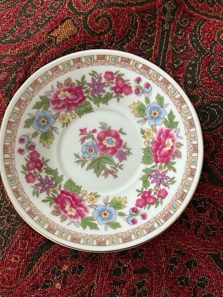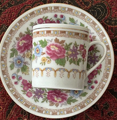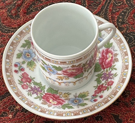 1 KOFFIETAS MET ONDERZETBORDJE MET BLOEMENMOTIEF