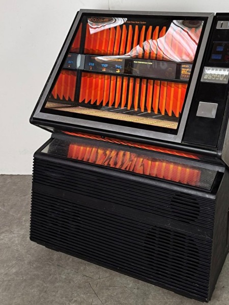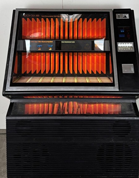 Mooie 1982 Rock-Ola Model 488-1 "Golden Sunset" jukebox.Tot160 selecties 45 RPM singles toe te voegen. Visueel: goede conditie, uiteraard met gebruikerssporen die je mag verwachten.