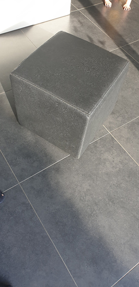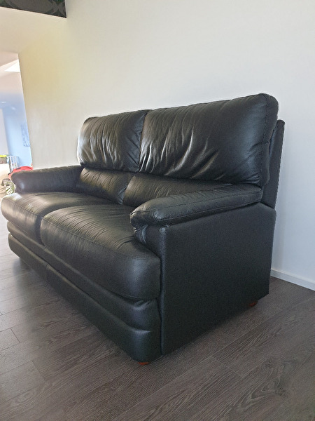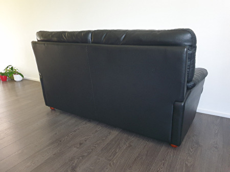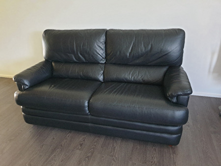 3-zit zetel zwart lider in zeer goede staat. Geen vlekken, krassen, scheuren of gaten. Breedte 190 cm.Lederen poef vierkant 40x40x40 cm