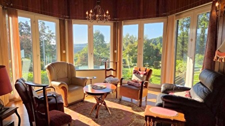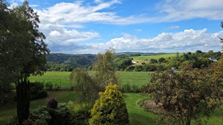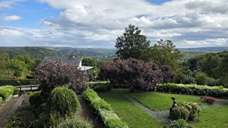 Prachtig vastgoedgeheel bestaande uit een ruime karaktervolle woning met aangelegde tuin en meerdere percelen in bouwzone, met een totale oppervlakte van meer dan 73 are en prachtige uitzichten over de Semois vallei.Samenstelling (7 slaapkamers, 2 badkamers, +-500m² totale oppervlakte) :