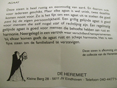 Anti-Stress ballen uitgevoerd in agaat met prachtige kleurschakering.Komen uit de collectie van de Heremiet(centrum voor bezinning,bezieling en innerlijke rust.Volgens hun gegevens,zouden deze mineralen instaan voor zelfvertrouwen en moed.Geven levenslust en laten je genieten van het leven.De steen geeft in het algemeen een gevoel van veiligheid,schoonheid,ruimte en innerlijke rust.Voorzien van de nodige documenten en opgeborgen in een origineel,mooi doosje met uitsparingen.De stenen zijn nog in bijzonder mooie