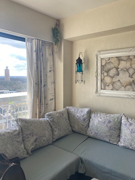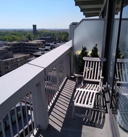 Groot terras over de lengte, met een mooi uitzicht want je zit op de 11de verdieping