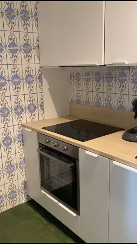 Eettafel voor 4 personen en een keukentje waar alles voor handen is