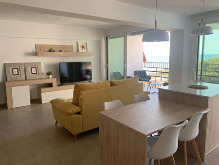 Gerenoveerd, modern appartement met prachtig zeezicht. Met groot zonnig terras op het zuiden, in Benicassim (70 km boven Valencia), direct aan zee, zandstrand en boulevard. Op loopafstand van alle voorzieningen (restaurants, supermarkt...). Met afgesloten parkeerplaatsen en lift. De huurprijs is incl. water en licht, gebruik van wifi en linnengoed.Licentie nummer: VT 43534