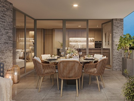 Bewoonbare oppervlakte: 61 vierkante meter- 1 slaapkamer-Living met eettafel voor 6 personen met stoelen. Woonkamer met keuken volledig ingericht met 4 inductieplaten. Aparte combi-oven, servieskast.