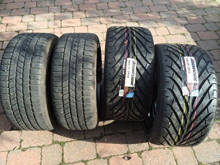 PORSCHE ZWART GELAKTE 18-ERS VELGEN MET BANDEN