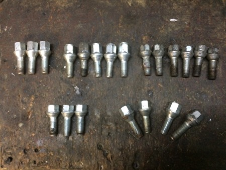 Universele wielbouten M12 x 1,5 mm, tussen 28mm en 32mm draadlengte.