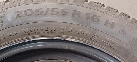 4 winterbanden Continental 205/55R16H gemonteerd op zwarte stalen velgen