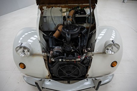 Interieur: Origineel met sporen van normaal gebruik, kap in goede staat, tapijten gebruikt – koord frigo ontbreekt