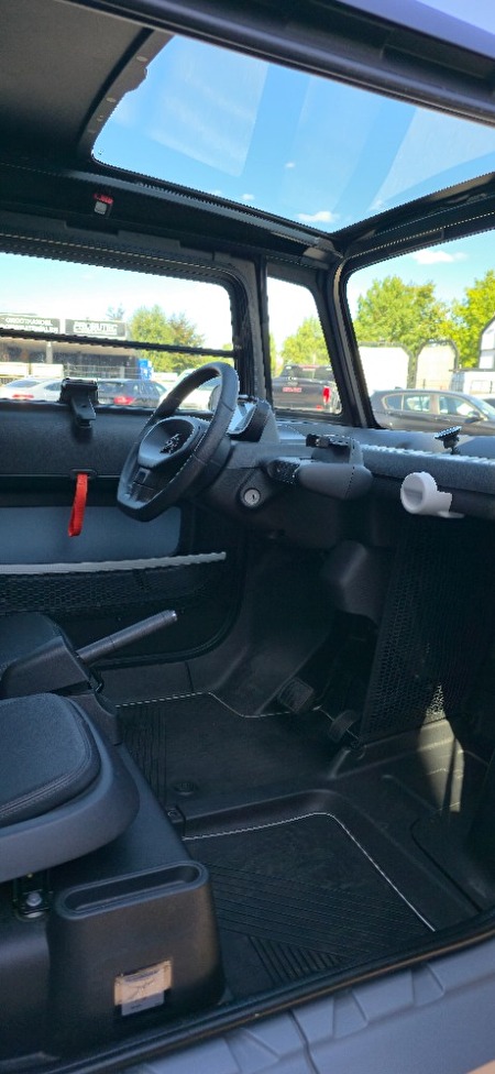 Kleur: Grijs mat met witte strepen Uitgerust met: glazen panoramadak, USB-aansluiting, sfeervolle LED-verlichting en meer Volledig elektrisch – geen uitstoot, geen brandstofkosten Geen rijbewijs nodig! Laadtijd: ±2 uur aan een normaal stopcontact Actieradius: tot 75 km per laadbeurt Topsnelheid: 45 km/u