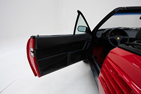 De Ferrari Mondial T uit 1991 vertegenwoordigt de laatste en technisch meest geavanceerde evolutie van de Mondial-reeks. In Rosso Corsa met zwart lederen interieur combineert deze 2+2 coupé zijn praktische inzetbaarheid met vernieuwde Ferrari-prestaties. De "T" in de naam verwijst naar de dwars geplaatste versnellingsbak en langsgeplaatste motor – een lay-out die ook werd gebruikt in de 348-serie.