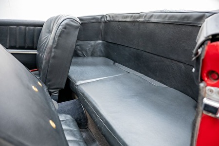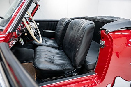 Carrosserie: Herlakt – presenteert goed, dorpels sterk maar ondeskundig hersteld. Originele kleur feuerwehr rot, nu donkerder rood (cherry). Inclusief zeldzame hardtop in carrosseriekleur