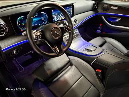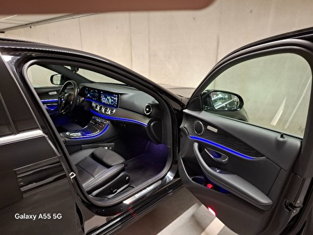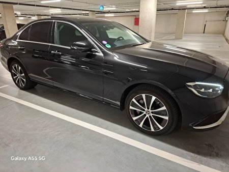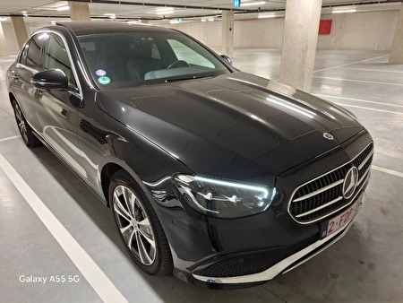 Aangeboden Mercedes E300de Business solution zwart metaal nieuwstaat 04.2024 27000km hybride leder parkeer sensoren 360parkeer camera automatisch parkeren automaat panoramisch schuifdak trekhaak airco en nog veel meer