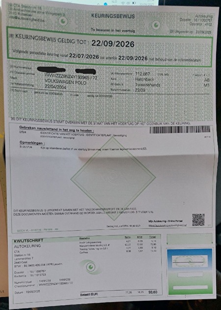 Ik verkoop mijn VW Polo 4 / 1.4, 16v, 55 kW, 75 pk, benzine, euro 4 / eerste maal in gebruik genomen 22-4-2004 / 113.000 km / gekeurd voor verkoop (met Car-Pass) / distributieriem en waterpomp werden vervangen juli 2023 / heeft wat lakschade aan bumper links vooraan / spiegel links met schade maar functioneert / overig lichte lakschadeprijs : 2250 €