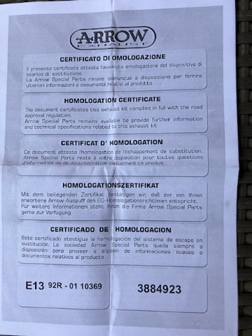 Te koop : Arrow uitlaat met Carbon Eind kap en Homologatie Certificaat ; voor een Vespa GTS 300 Supersport HPE 2019 tot heden.Reden Verkoop : Aankoop nieuwe Vespa 310 en daar past hij niet meer op.