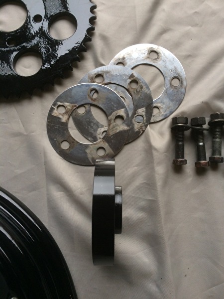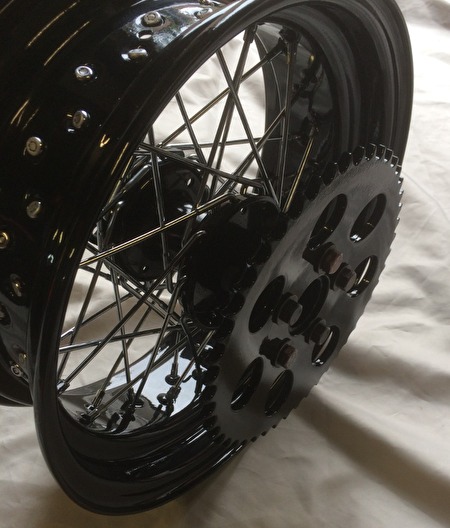 HARLEY 15 X 5,5 VELG MET TANDWIEL, SPACER, BOUTEN & SHIMS