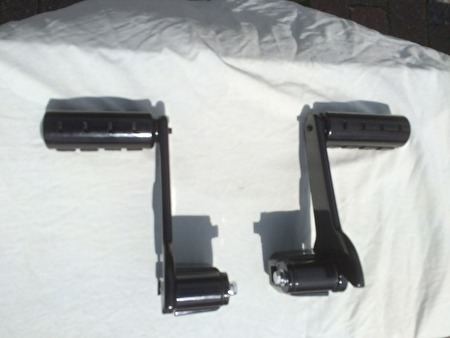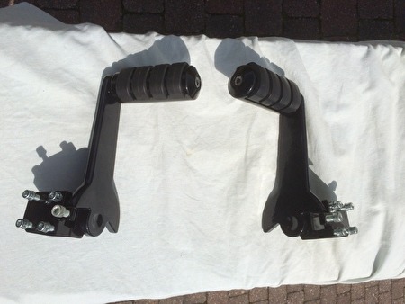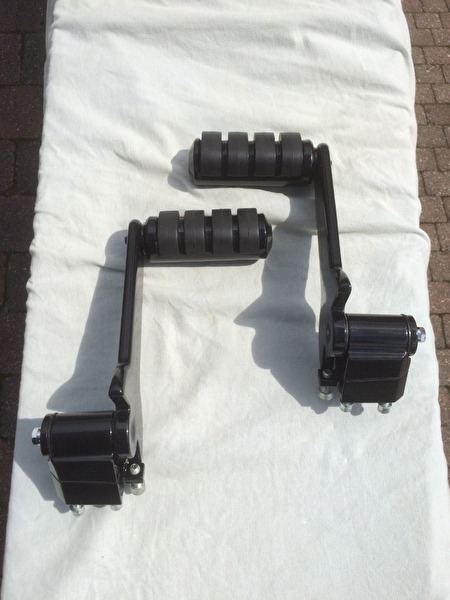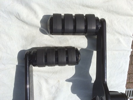 Harley type FLT, KURYAKYN inklapbare passagiersvoetsteunen KU 7926, voor FLT 93 tot 2007, zwart, in nieuw staat, gebruik enkel op originele harley tweeplankbevestigingssteunen (53070-00) mogelijk, ook te koop zonder de footpegs199,-€
