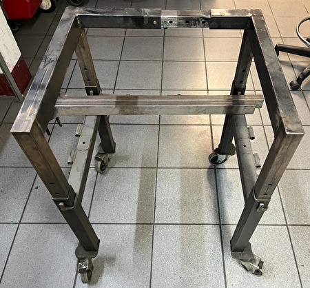 Motortafel of frame speciaal ontworpen voor Harley frames, gebruikt om motorfiets te demonteren/monteren, tafel/stoel is in hoogte en breedte verstelbaar ,speciaal vervaardigd voor het gebruik in combinatie van een enkele pistonkrik met beveiligingssteunen tegen mogelijk naar voor of achter kantelen.150,-€