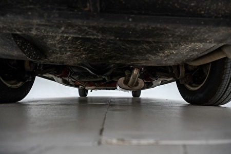 Onderzijde: Hersteld en in goede staat. Rubbers van de voorste schokdempers kapot.