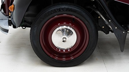Dit exemplaar werd voor het eerst ingeschreven op 06/01/1982 en onderging een perfecte professionele restauratie. De carrosserie presenteert zich uitstekend en werd professioneel herlakt in de originele kleurstelling Black-Bordeaux. Het lakwerk verkeert in zeer mooie staat en respecteert volledig de originele Charleston-kleurcombinatie.