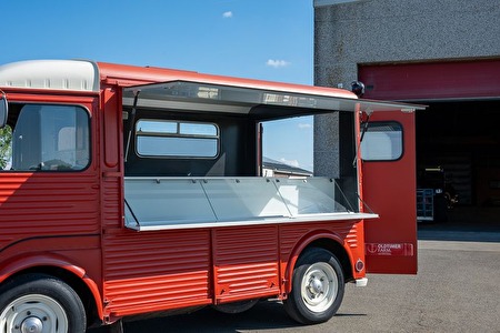 Deze Citroën HY werd op 6 maart 1969 voor het eerst ingeschreven en groeide uit tot een icoon onder de Franse bestelwagens. Dit exemplaar onderging een professionele restauratie en werd omgebouwd tot een moderne foodtruck met behoud van zijn karaktervolle uitstraling. De wagen is volledig gebruiksklaar en vormt een ideaal mobiel visitekaartje voor ondernemers die stijl en functionaliteit willen combineren.