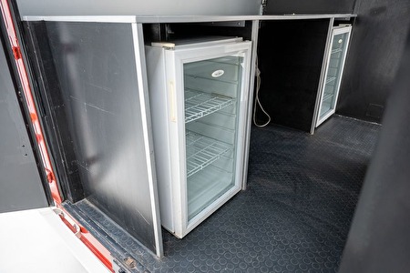 Interieur: Origineel met normale gebruikssporen – tapijten gebruikt – professioneel ingericht als foodtruck