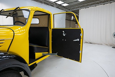 Dit specifieke exemplaar uit 1939 is volledig gerestaureerd. Het houten laadgedeelte werd ambachtelijk herbouwd, het plaatwerk professioneel gestraald en herspoten in een historische kleurstelling. De tweecilinder tweetaktmotor werd volledig gereviseerd en loopt soepel. Ook het interieur is hersteld met respect voor de originele uitvoering.