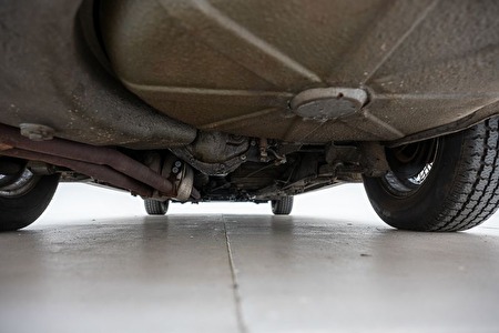 Onderzijde: Vuil met vetsporen; oppervlakkige roest; laswerk aan de bodem; uitlaat oud.