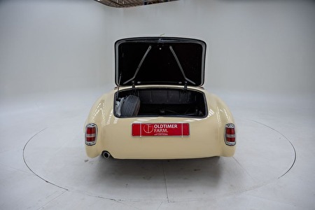 Elfenbein en rood leer zorgt voor een authentieke rijervaring die zowel sportief als comfortabel is – een zeldzame combinatie in de wereld van klassieke sportwagens.