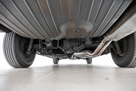 Onderzijde: Eerder laswerk uitgevoerd – makkelijk te verbeteren, veel vetsporen, brandstofleiding te vervangen