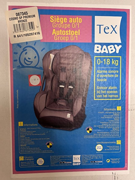 Autostoel baby groep O/1, vanaf geboorte tot 18 kg. Slecht 1x gebruikt wegens bezoek kleinkind uit buitenland. PRAKTISCH : snel en simpele installatie, hoes verwijderbaar en wasbaar. COMFORT : hoofdsteunkussen, verkleinkussen voor de kleinsten, aangepast aan lichaamsvorm, zeer comfortabel met dik gewatteerde hoes, verzetten van rugstand zeer handig. VEILIGHEID : 5 punten gordel, beschermkussen rond het harnas, sonoor alarm bij het openen van het harnas, verstevingsbuizen voor een maximale laterale bescherming.prijs : 25 €