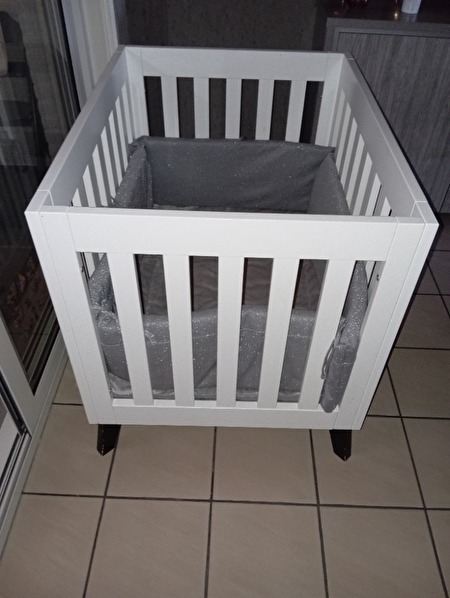 Kinder box verstelbaar in 2 standen halver wege en helemaal beneden matrasje + stoffen omheining erbij