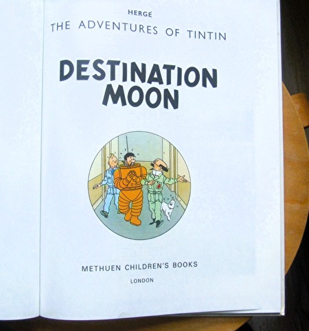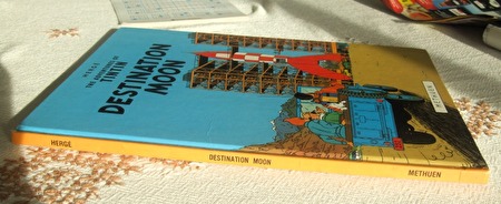 Kuifje " DESTINATION MOON " = "Raket naar de Maan" in het Engels - kartonnen kaft - boek zo goed als nieuw - ophalen of verzenden(+ verzendkosten)