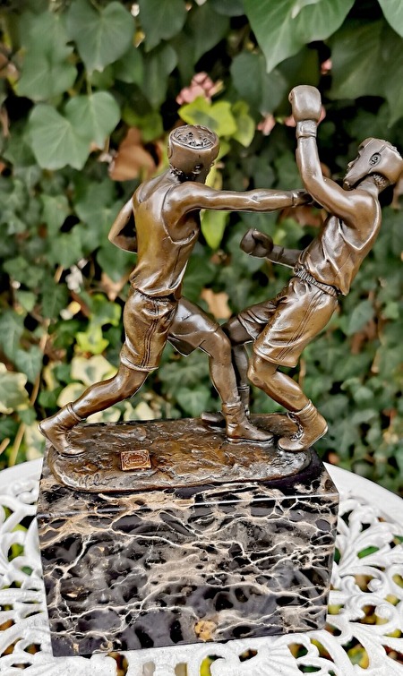 24 cm hoog, 8 cm breed, 14 cm lang, gemerkt, op marmeren sokkel, in perfecte staat. 300 euro plus verzendkosten.