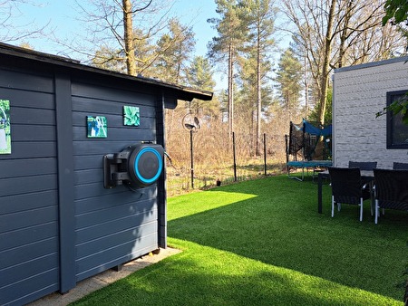 Het Boshuisje heeft een omheinde tuin met borders, een groot terras en speelruimte achter het chalet met een trampoline met veiligheidsnet. Huisdieren zijn toegestaan.