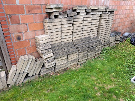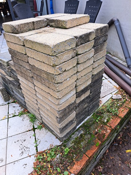 Klinkers zijn proper gemaakt voor het uitbreken omdat ze eerst terug geplaatst zouden worden maar de plannen zijn veranderd en mogen nu iemand anders blij maken.