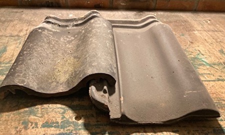 Ik zoek een 10-tal linkse gevelpannen van Wienerberger Müller E32 antraciet zwart tweedehands of nieuw zoals afgebeeld links op de foto. Daar is slechts een gedeelte van de dakpan te zien, maar ik heb wel volledige nodig natuurlijk. Het betreft dus een linkse gevelpan met een zogenaamde "dubbele wel".