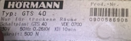 Hormann GTS- 40 poortopeneronderdelen