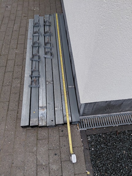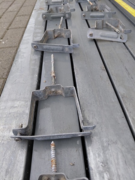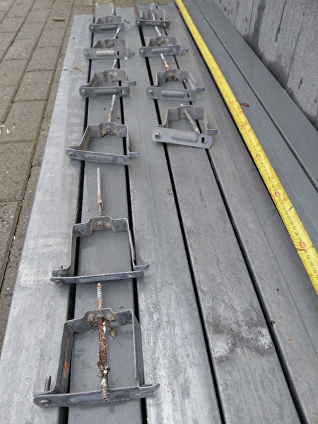Dakgootafvoerpijpen vierkant (8 cm X 8 cm)met bevestigingen (+/- 7 x 1,80 m)7 dakgootafvoerpijpen vierkant (8 cm X 8 cm) met bevestigingen; tussen 1,80 m en 2,00 m; een aantal lengtes op de uiteinden beschadigd; prima voor herstellingen. 8 cm X 8 cm