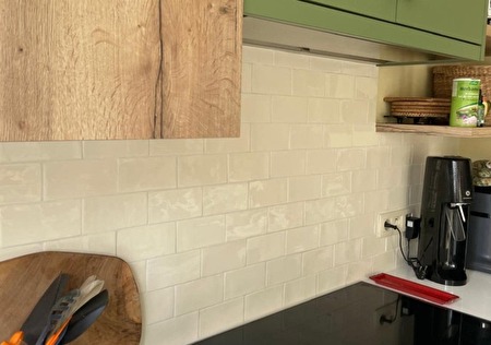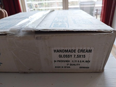 Mooie glanzende rechthoekige vanille gele muurtegels. We hebben een volledige complete doos over van 64 stuks.