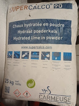 3 ongeopende zakken (en een halve) van 25 kg hydraat poederkalk. Winkelprijs ong