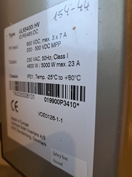 2 omvormers DANFOSS ULX5400HV, 2 - fasigBeide omvormers hebben elk 3 MPP trackers, dus kunnen er maximaal 6 strings worden aangesloten.