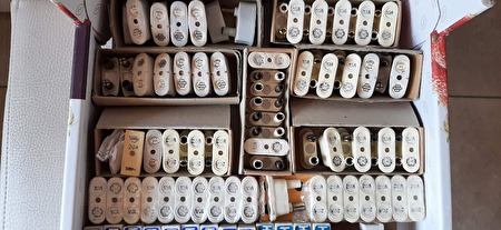 de koperen contactbussen,vrouwlijke, pinhouders, ook alviolen genoemd voor de penzekeringen 7 mm (of andere types) heb ik ook liggen,