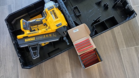 DeWALT nagelpistool om nagels te schieten in beton. Vooral gebruikt om leidingen op beton te fixeren met een metalen lint. Dit om zweven in de PUR of chape te voorkomen. Nog goed als nieuw. Slechts gebruikt in mijn eigen bouw.
