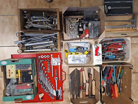Hoofdzakelijk metaal bewerking Vijlen, sleutel,s Facom koffer, draadtappen, boren, draadsnij, schuifmaten, rolmeters en meer