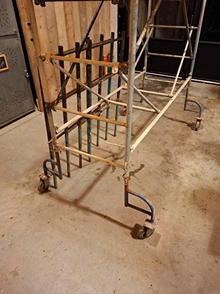 rolstelling COMABI OPSTELLING OP FOTO NU 245 hoog 60 breed ook nog 4 verhoog elementen van 90 cm DAN IS DE HOOGTE VAN DE STELLING ZELF 425 hoog...PS. DIT IS NU TWEEMAAL GESPOTEN MET ZINKVERF DUS VERZORGDE STAAT FOTO'S NU ZIJN VAN VOOR DE SPUITING...