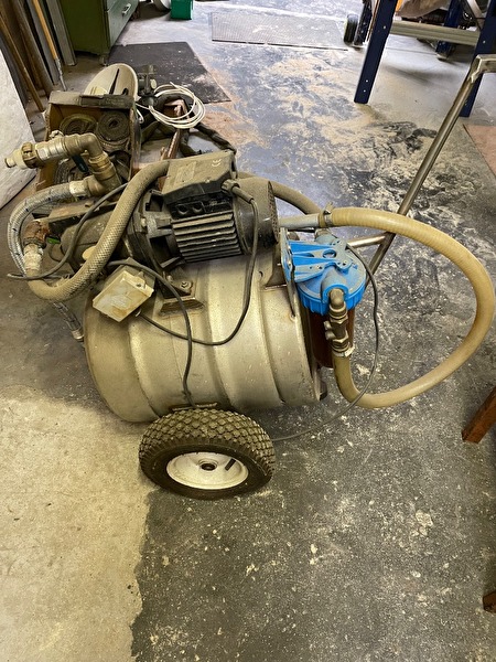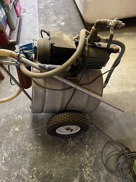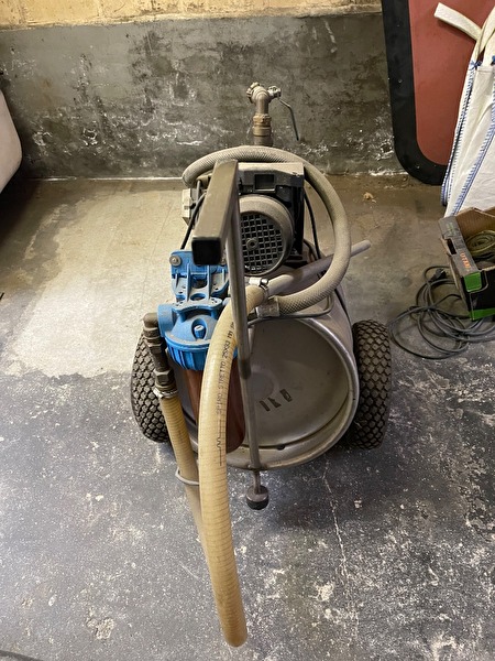 Pomp 230V op inox vat met wielen onder, heeft zeer weinig gedraaid te koop wegens naar appartement af te halen in Willebroek, filter met reserve filter