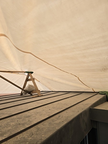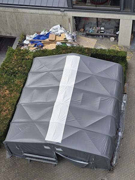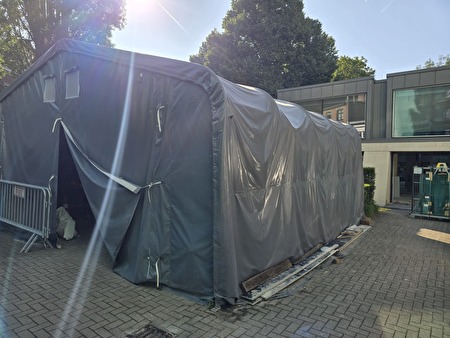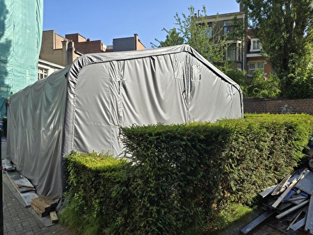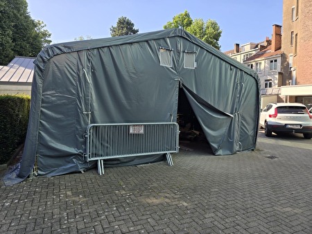 Professionnele tent merk DANCOVER 1 maal gebruikt 600 gr dikte van zeil 7mx 7m aankoopprijs 2 000 EUR verkoopprijs1000 EUR .Ter plaatse af te breken BRUSSEL bouwplaats gemakkelijk op te stellen
