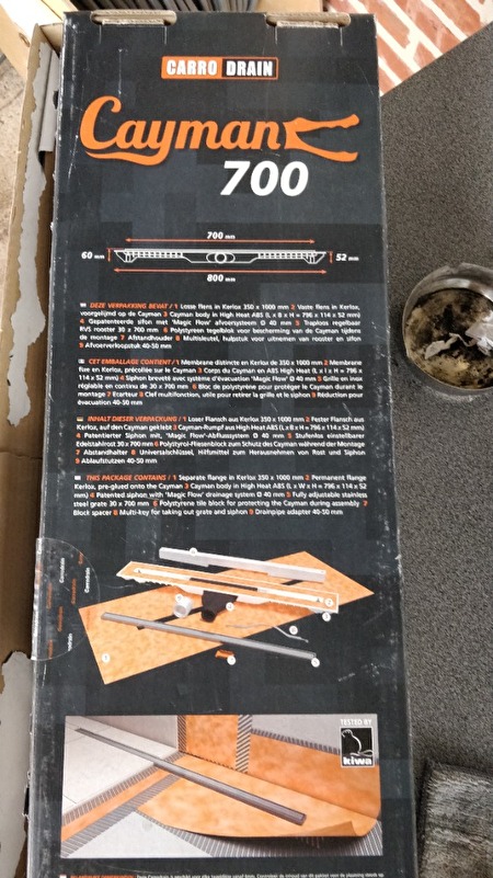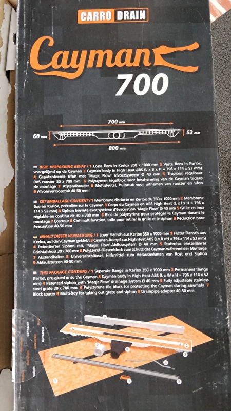 Nieuwe douchegoot Cayman 700 nog in de doos nieuwprijs 429 Euro.