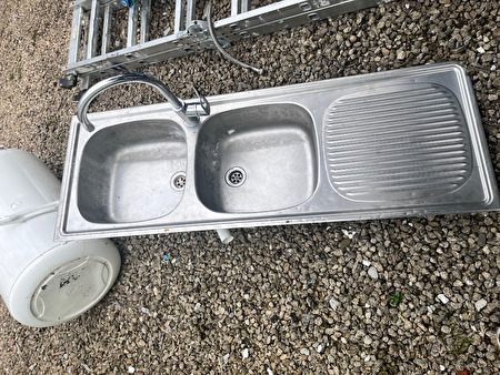Inox lavabo met was- en spoelbak en kraan